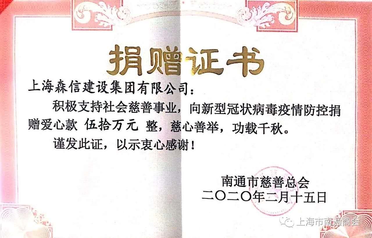 2020年3月5日,中共上海森信建設(shè)集團(tuán)有限公司支部委員會(huì)號(hào)召全體黨員捐款。