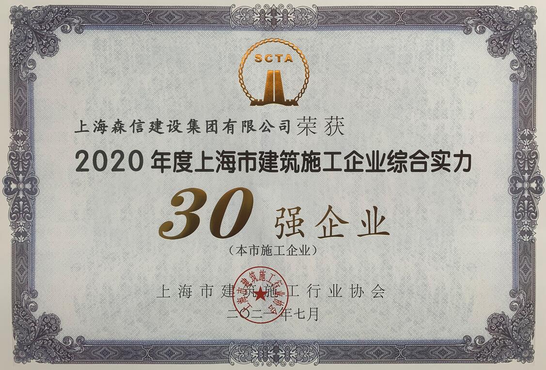 近日,2020年度上海市建筑施工企業(yè)綜合實力數(shù)據(jù)統(tǒng)計公布,上海森信建設集團再度榮獲上海市建筑施工企業(yè)綜合實力30強企業(yè)。本次的市建筑企業(yè)綜合實力數(shù)據(jù)統(tǒng)計是由上海建筑施工行業(yè)協(xié)會按照統(tǒng)計工作的指標體系及標準,嚴格對申報企業(yè)2020年度的建安產(chǎn)值、完稅總和和企業(yè)管理數(shù)據(jù)進行統(tǒng)計分析,最終評選出前30位的企業(yè)。