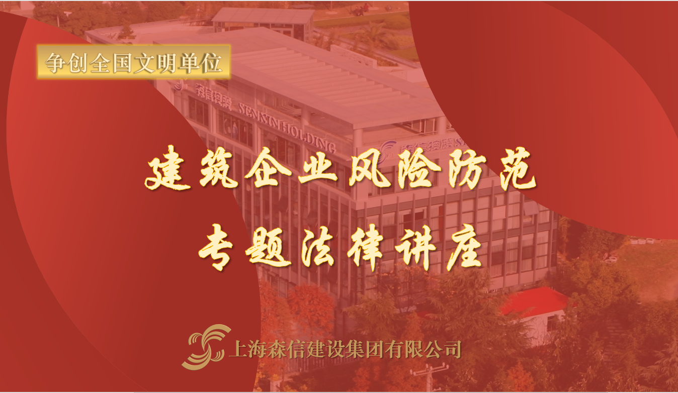 8月30日,森信集團(tuán)組織各部門員工參加“建筑企業(yè)風(fēng)險(xiǎn)防范專題法律講座”,了解施工企業(yè)破產(chǎn)債權(quán)實(shí)現(xiàn)的現(xiàn)狀和趨勢、破產(chǎn)程序及破產(chǎn)財(cái)產(chǎn)的分配等,居安思危,從工作細(xì)節(jié)處把關(guān)提升公司管理能力與法律思維。