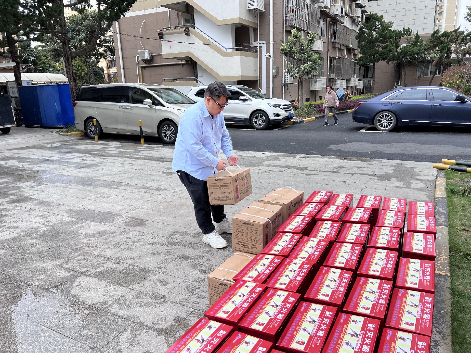 曲陽(yáng)路街道人大工委副主任朱華,虹口區(qū)人大代表、森信集團(tuán)總裁王銘豪,赤三居民區(qū)黨支部姜穎聰?shù)瘸鱿栀?zèng)活動(dòng)。