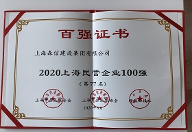 熱烈祝賀我司榮獲2020上海民營企業(yè)100強
