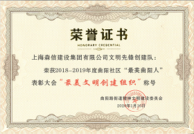 上海森信建設集團有限公司榮獲最美文明創(chuàng)建組織稱號