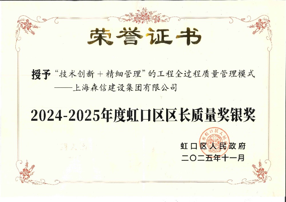 森信集團(tuán)榮獲2024-2025年度虹口區(qū)區(qū)長質(zhì)量獎銀獎
