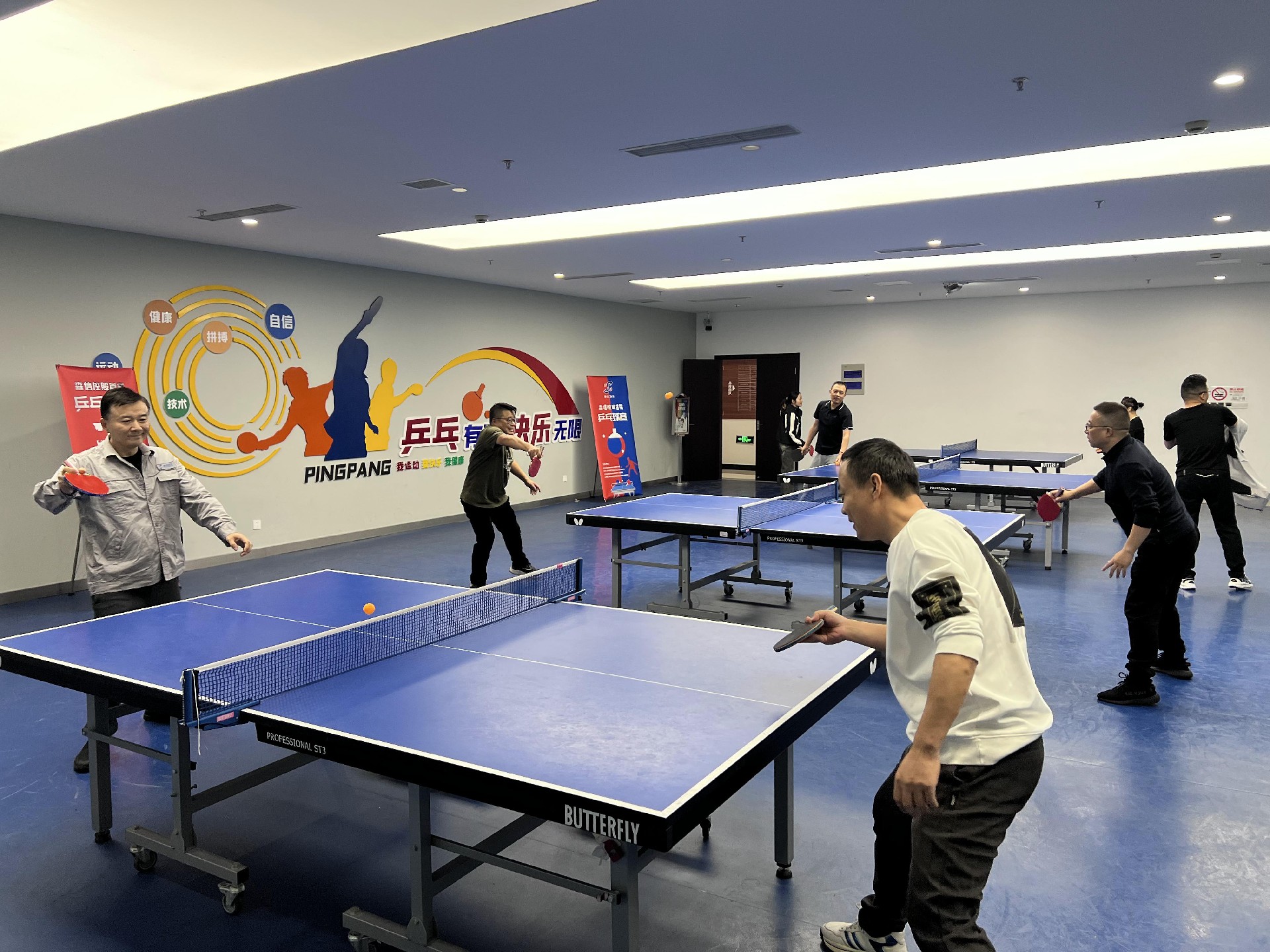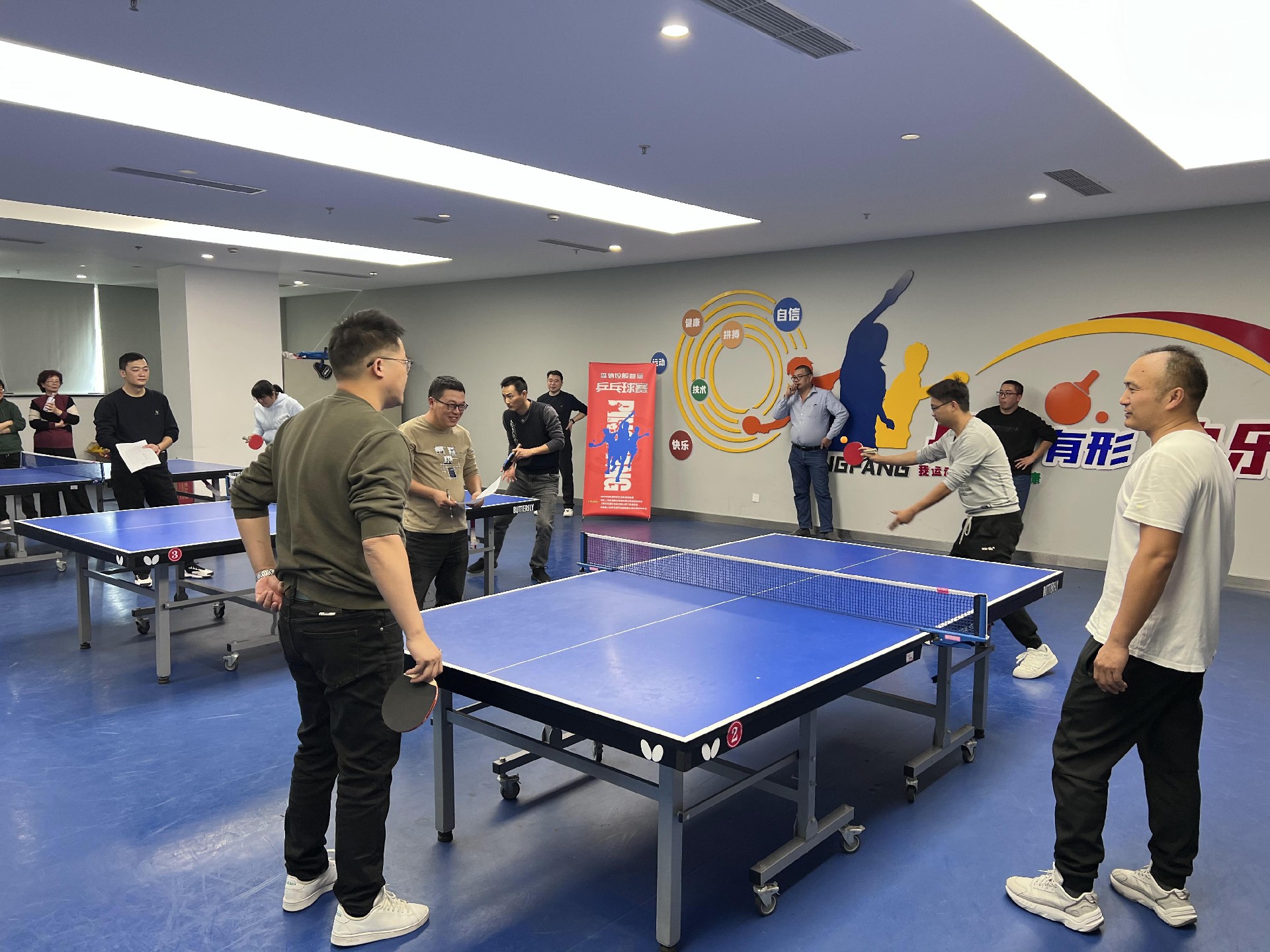 來(lái)自集團(tuán)各部門(mén)/項(xiàng)目部的30多位乒乓球愛(ài)好者參與比賽;比賽采用11分制,單項(xiàng)每場(chǎng)比賽為三局兩勝制。